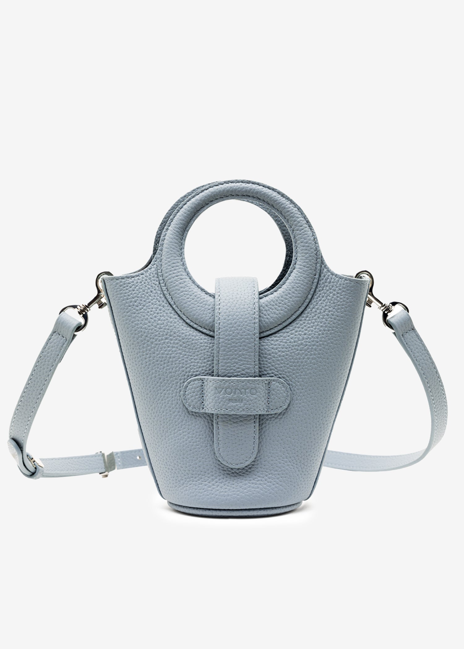 Introducing the Vonto Essence Series Forma Mini Tote Bag– an elegant fusion of craftsmanship and modern design. Made from premium togo leather, this bag boasts a minimalist silhouette with its curved, circular handle, and compact structure. The pebbletextured finish provides a luxurious tactile experience, while the sleek strap closure adds a functional, yet sophisticated detail. Perfectly sized for your daily essentials, Forma Mini Tote Bag is an ideal companion for those who appreciate both style and practicality. Complete with the embossed Vonto logo, this piece speaks to refined taste and timeless appeal.