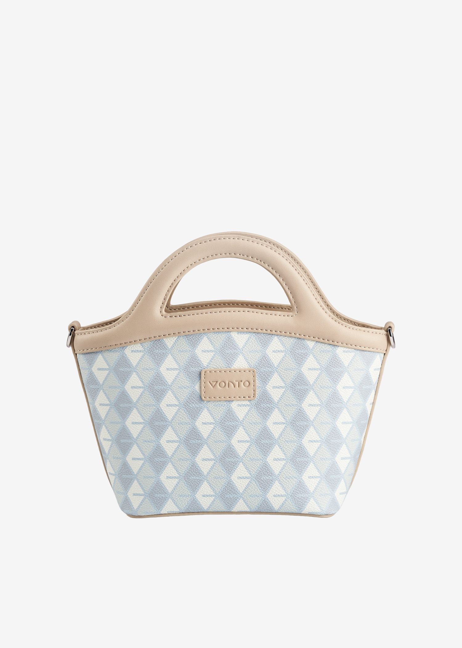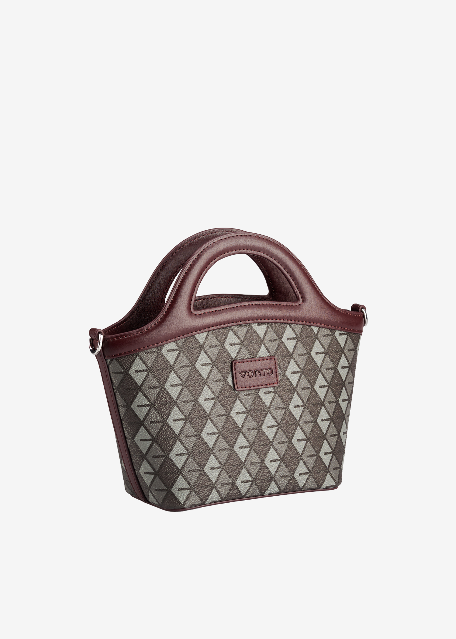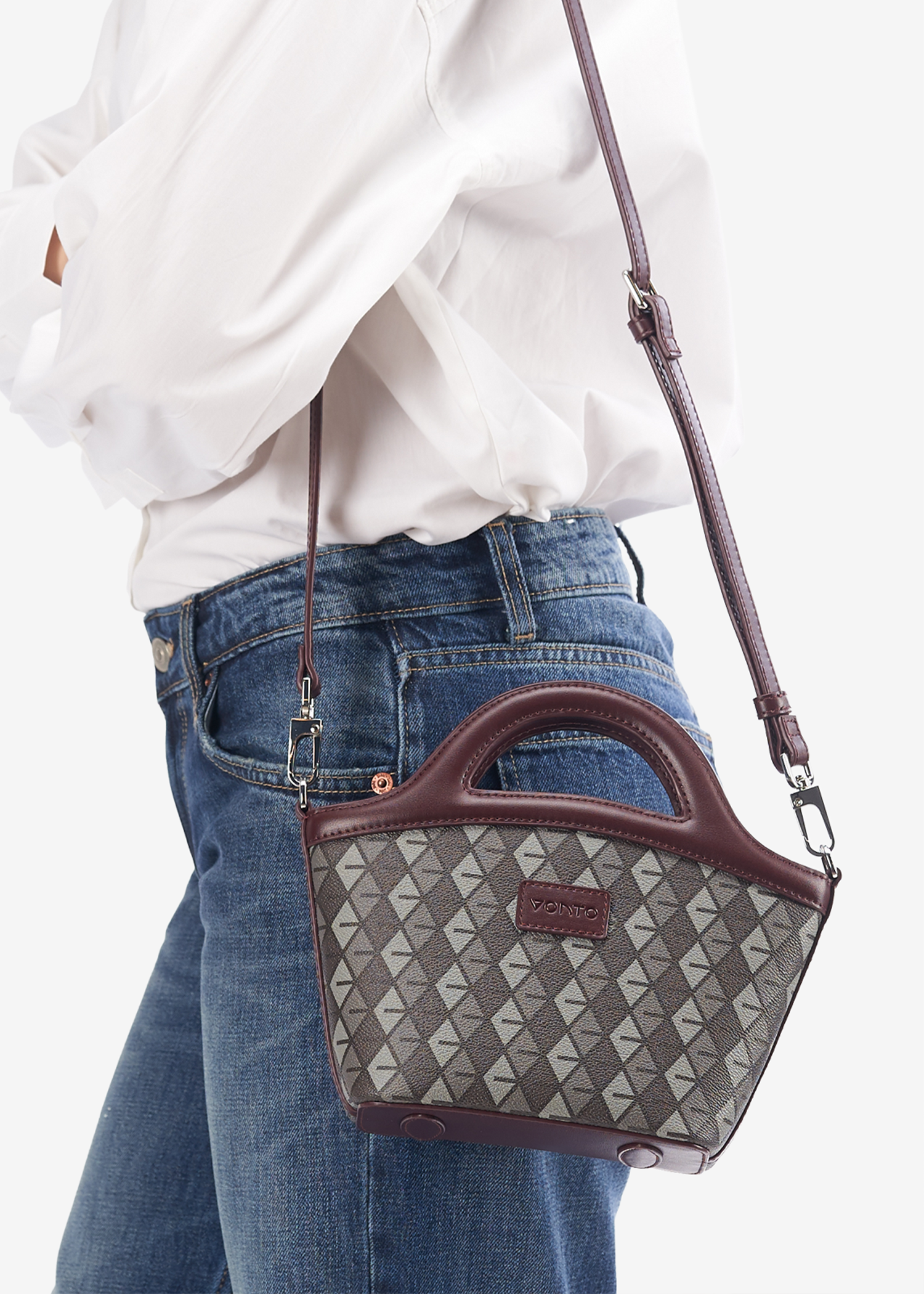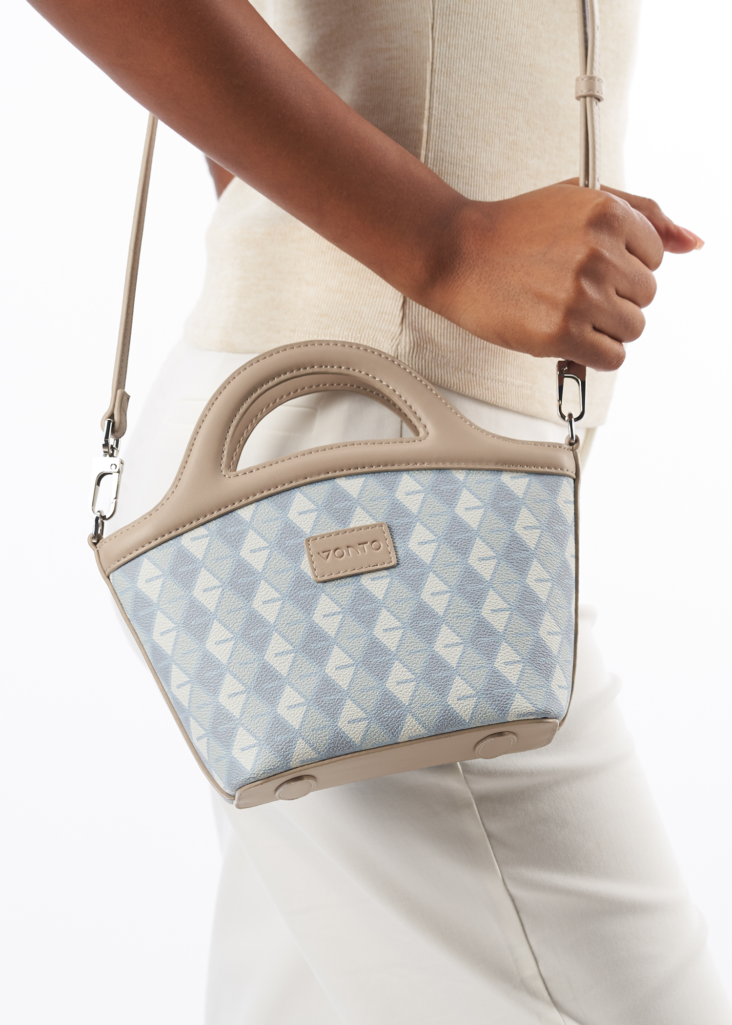 - Integrated arched handles, crossbody strap compatible.
