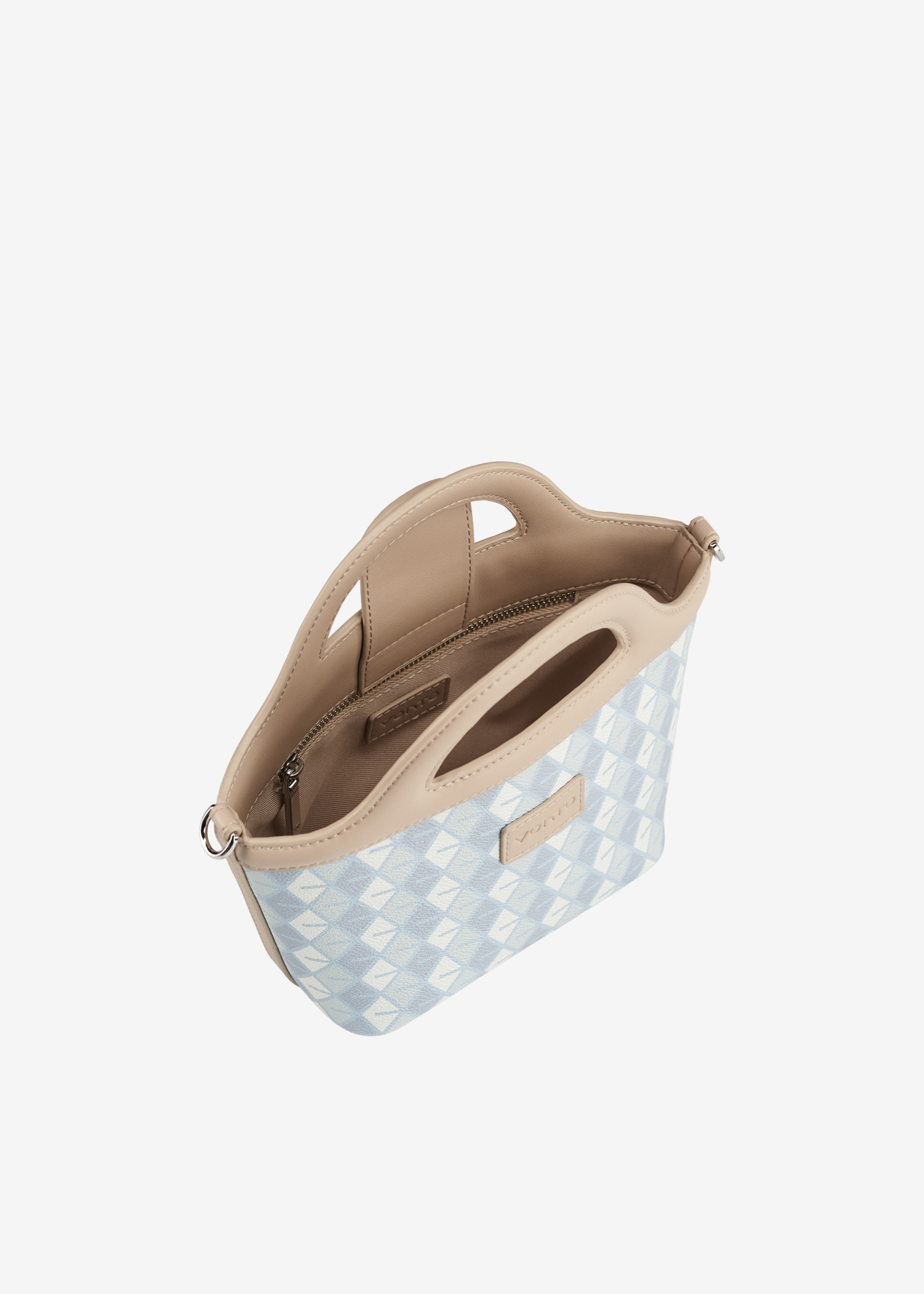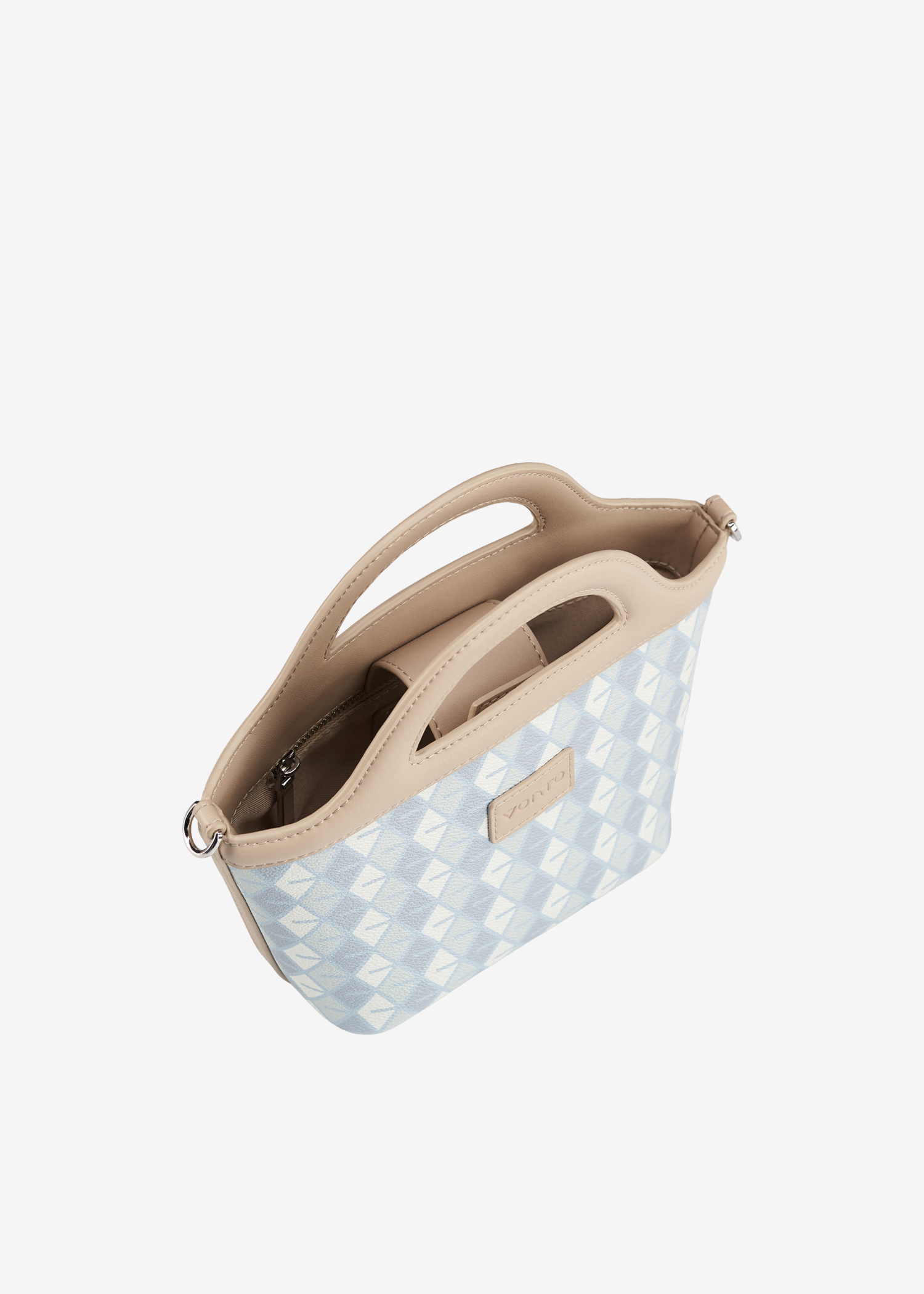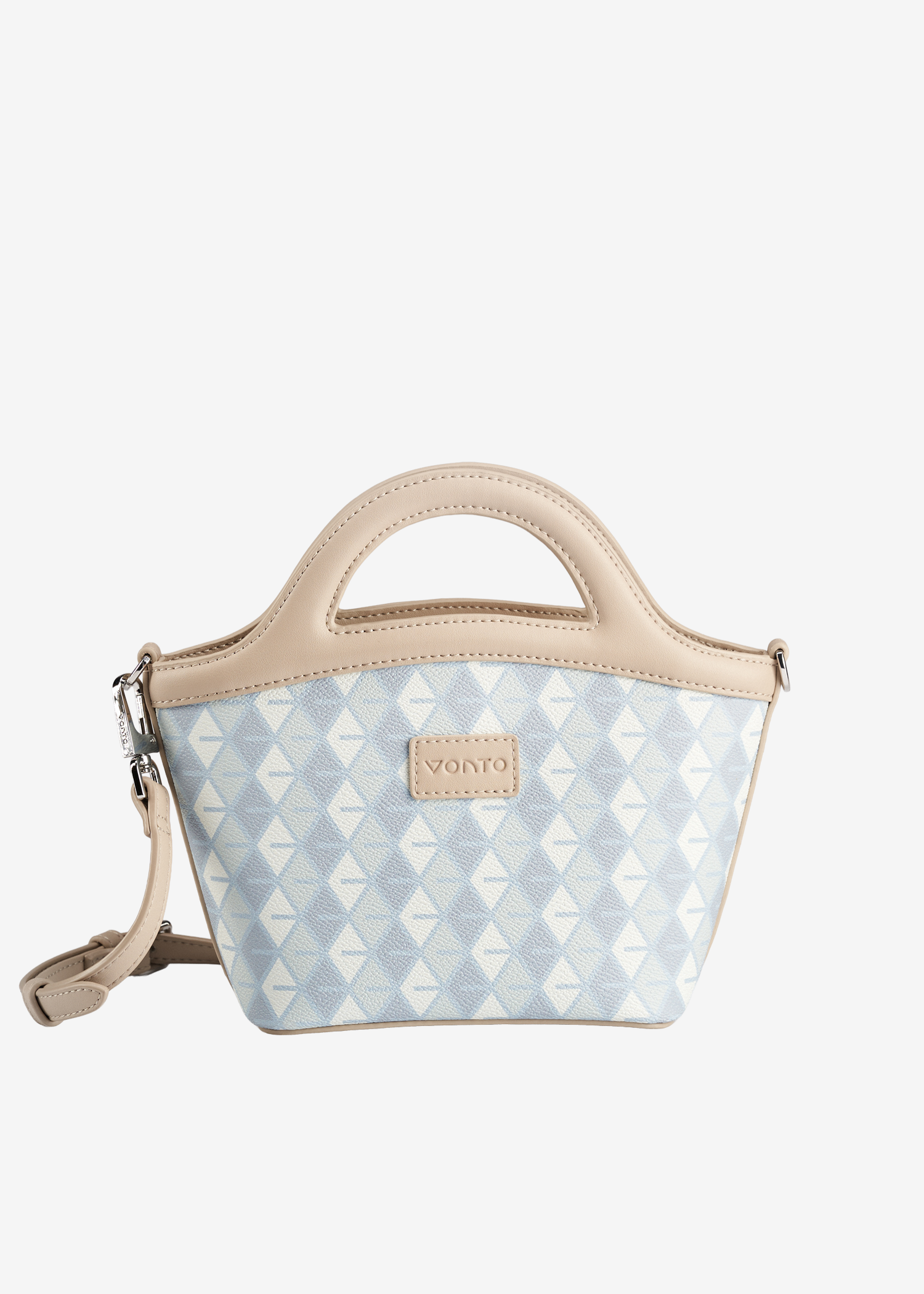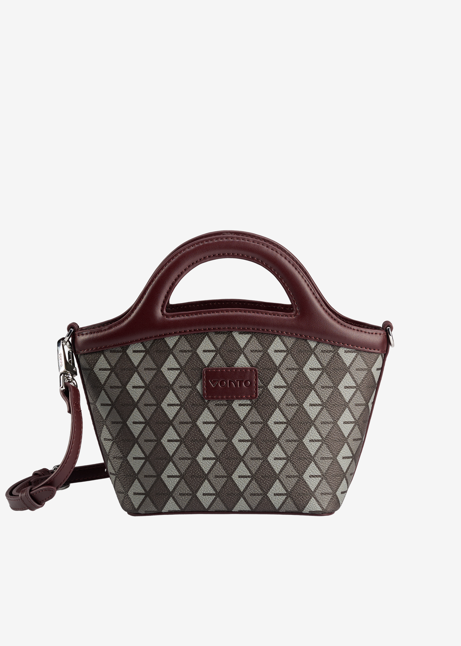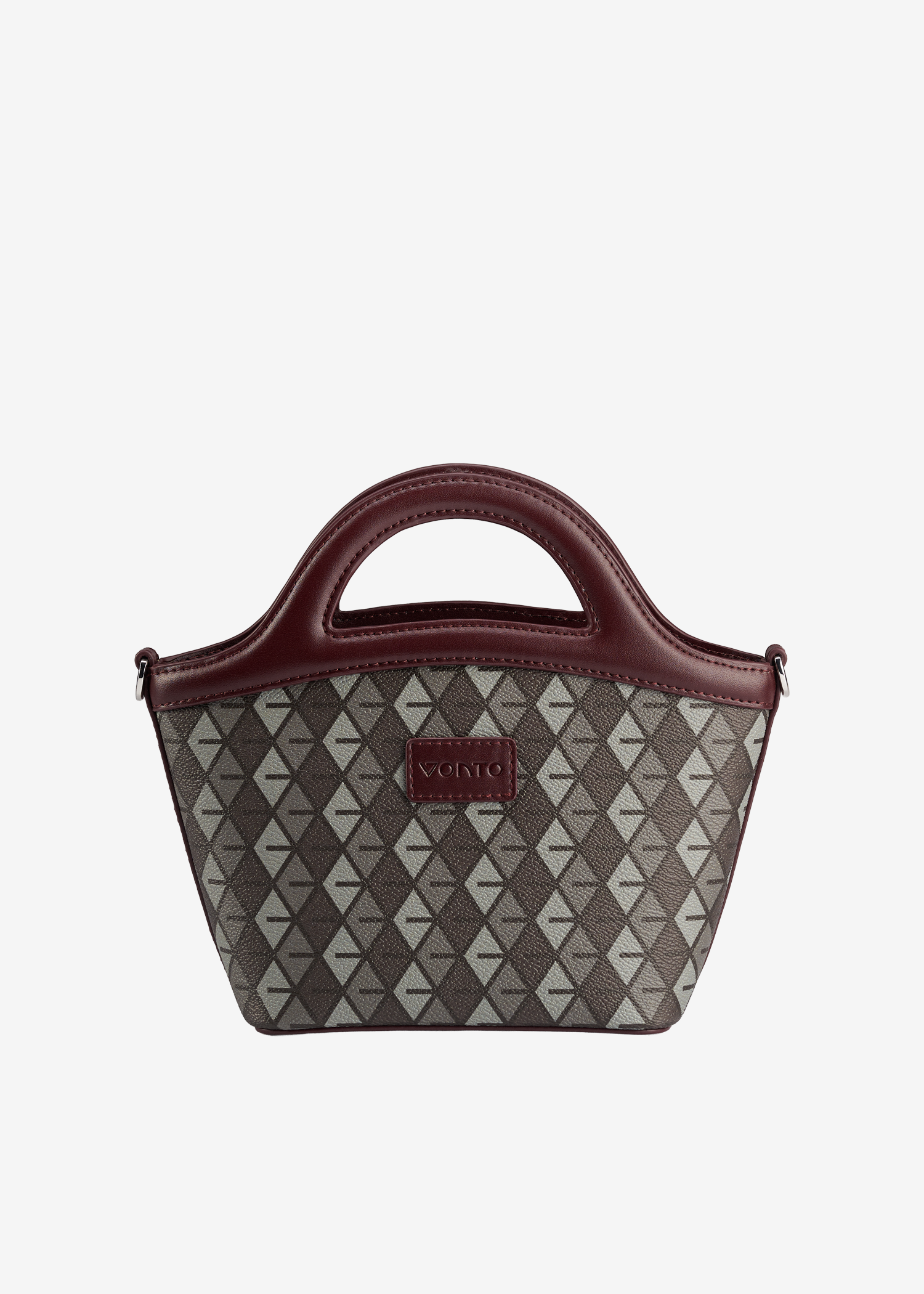 - Integrated arched handles, crossbody strap compatible.