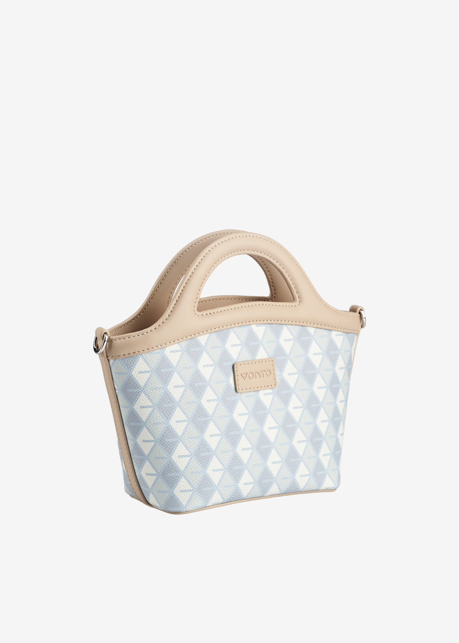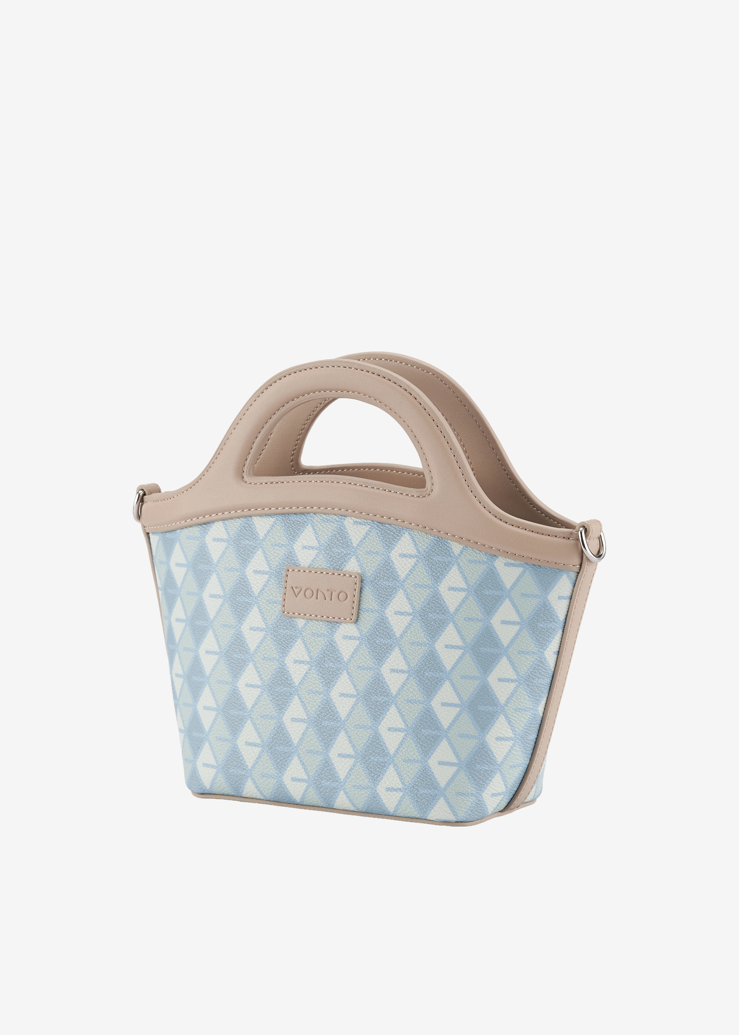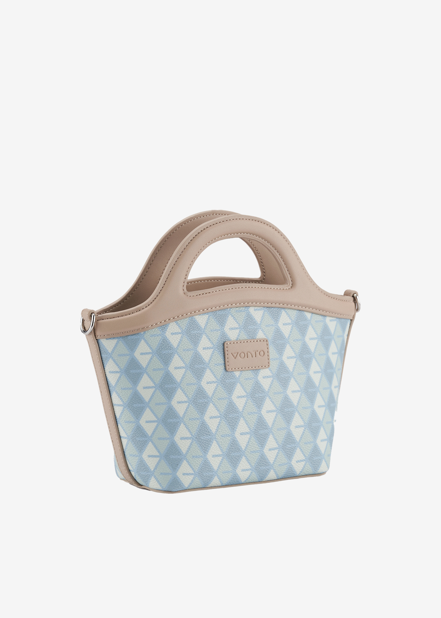 The Halo Mini Basket is a compact, structured silhouette in VONTO coated canvas with leather trim. The arched handles create a clean handheld profile, while subtle side rings allow for a detachable crossbody strap. It is finished with an interior slip pocket for essentials and comes in Rust Mocha or Sky Blue, the signature tones of The August Chapter.