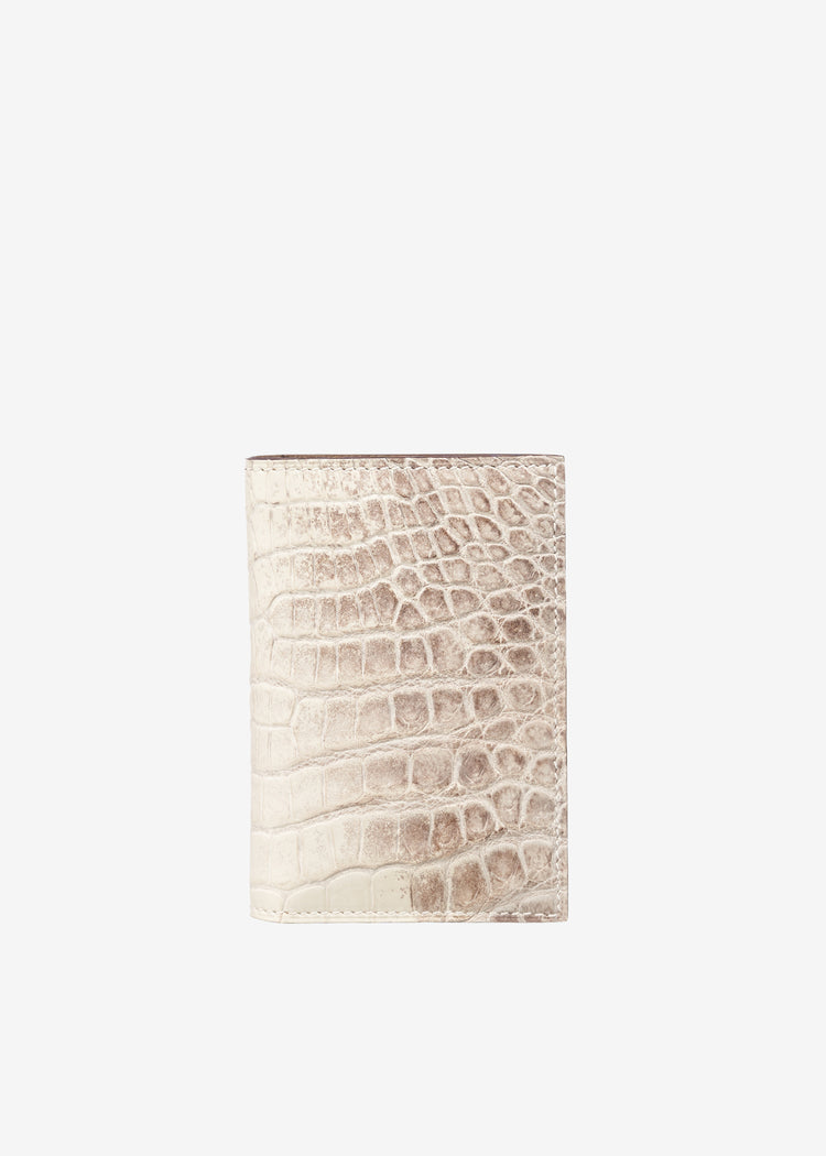 The VONTO Himalayan Crocodile Vertical Wallet is crafted entirely by hand in Himalayan Niloticus crocodile, a leather renowned for its natural gradient that shifts from smoky grey to pearlescent white.