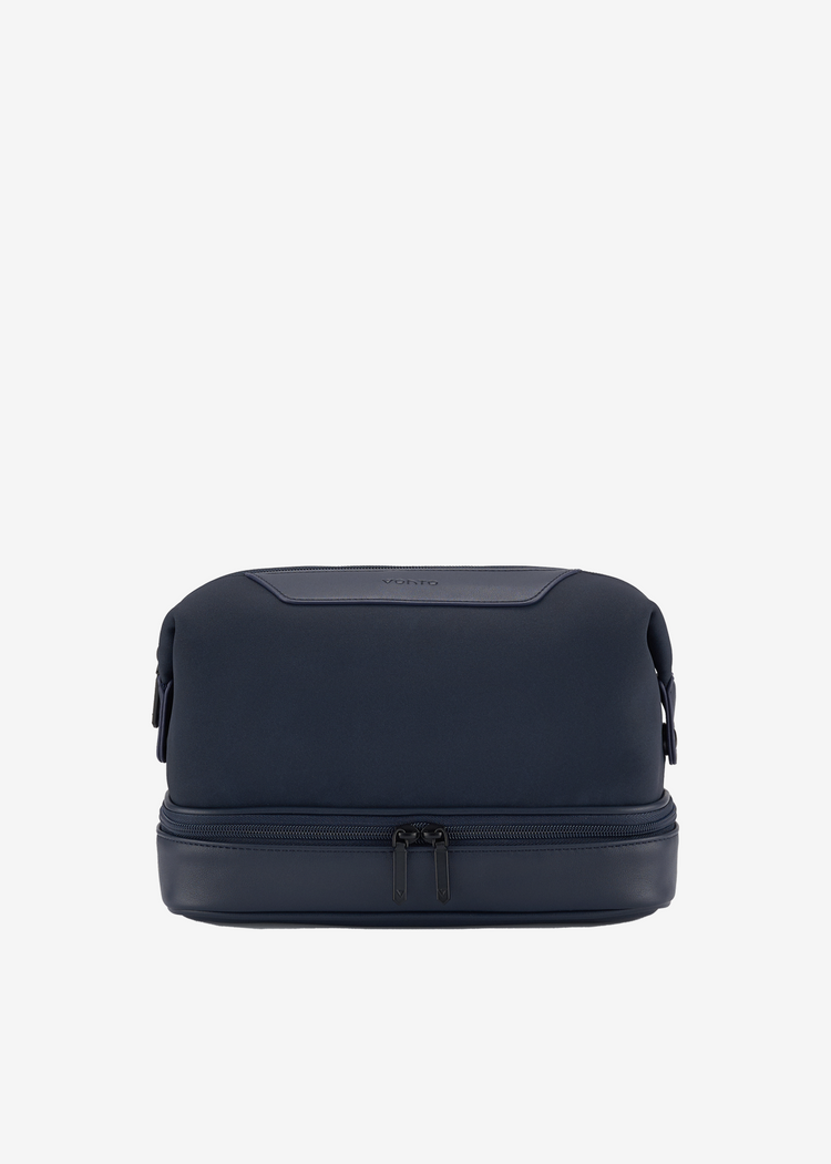 The durable zipper closure and sleek handle ensure easy portability, making it a perfect companion for both short getaways and extended journeys. Whether for daily use or travel, the Aqua Suede Wash Bag adds a touch of sophistication to your routine.